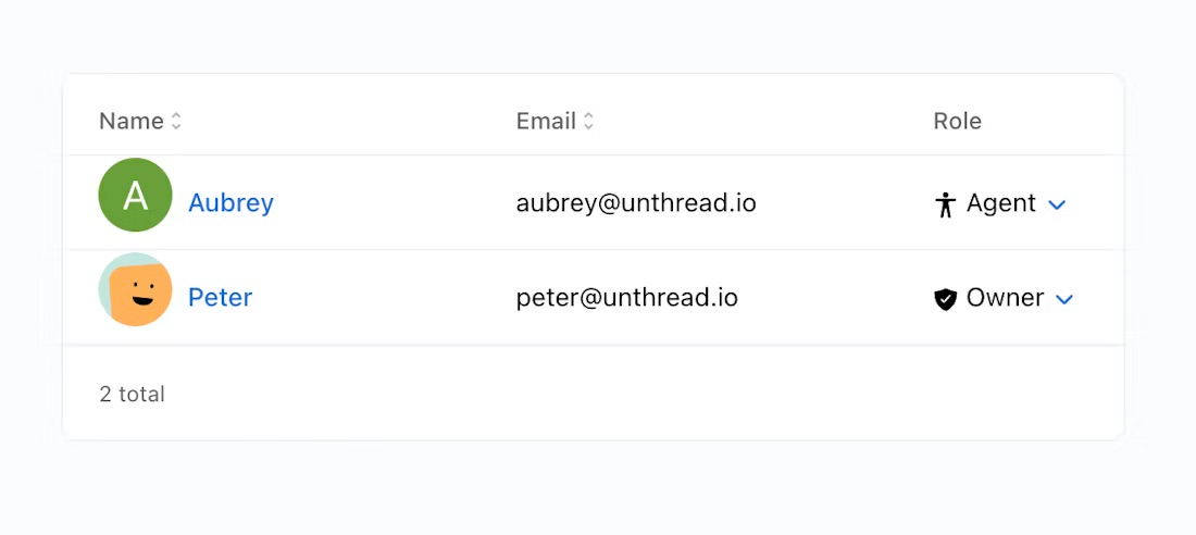 From your “People” tab, you can manage folks who are able to manage your Unthread instance across projects. These roles can be applied to users at the organization level: