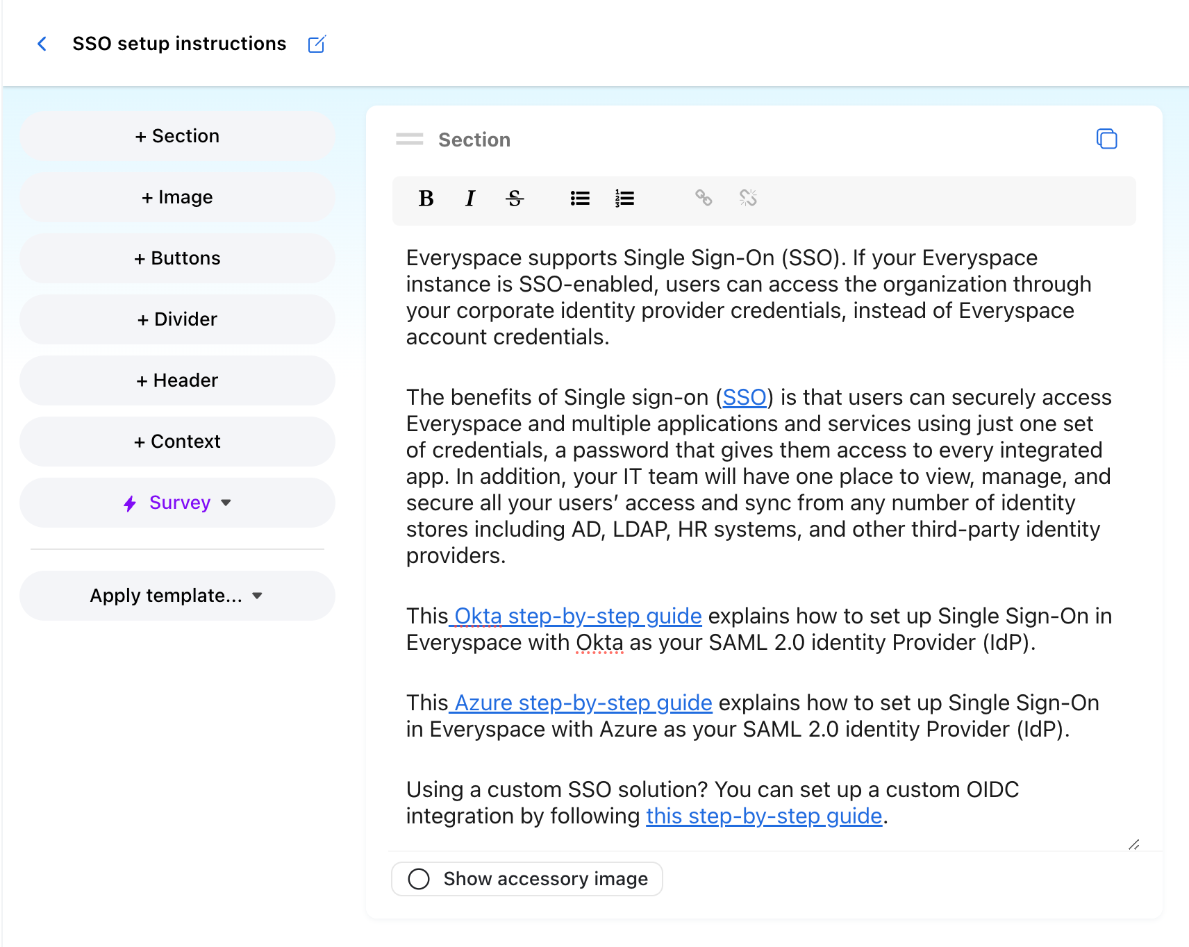 Templates are ways to easily re-use messages and snippets to instantly send them as a reply in a conversation. Templates can use rich formatting with embedded images, buttons, and even surveys. Let’s look at how they work!