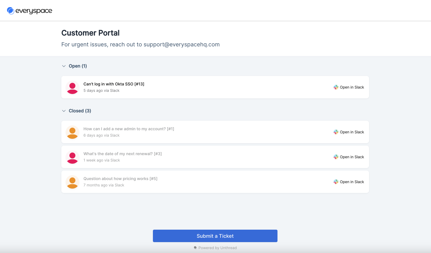 - Enable and configure the customer portal in your Unthread dashboard